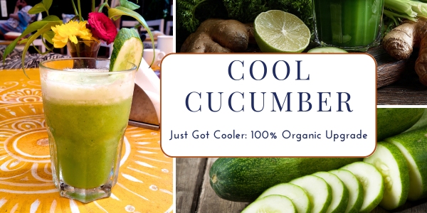 Cool Cucumber Just Got Even Cooler! Organic Upgrade When ordinary hydration and sugary drinks just don’t cut it, it’s time to turn to the ultimate cooler: The Cool Cucumber, now even cooler, 100% Organic. Many restaurants tout “the finest ingredients” meaning only nice shape or size. But how can they call produce the ‘best’ when […]